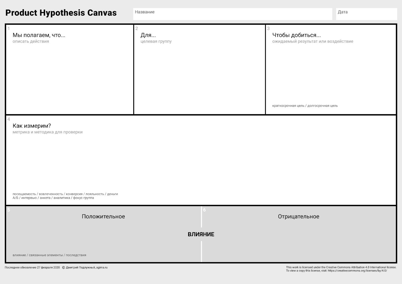 Я ВЕРЮ, ЧТО (моя функция / продукт / решение) БУДЕТ (направление изменения) (то, что изменится) ДЛЯ (целевого пользователя) ПОТОМУ ЧТО (причина изменения)